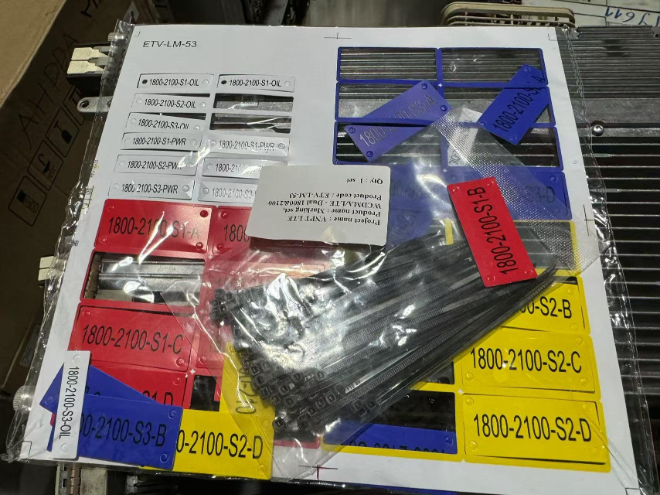Один набор маркировки содержит несколько единиц маркировки, на каждой из которых напечатана одна из следующих деталей: · Серийный номер сектора: достаточные этикетки для 6 секторов. · Название технологии: 2G, 3G или 4G. · Диапазон частот: 900 MHz, 1800 MHz или 2100 MHz. · Символ волокна для того же сектора, технологии и частотной полосы (с тем же MIMO): A, B, C или D.